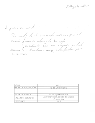 AGRADECIENDO DE ANTEMANO LOS SERVICIOS CORDIALES, PUNTUALES, ATENTOS Y AMABLES, YA QUE ACLARARON MIS DUDAS SOBRE EL SERVICIO FUNERARIO Y ESTUVIERON PENDIENTES DE LOS TRÁMITES Y SITUACIÓN FAMILIAR.